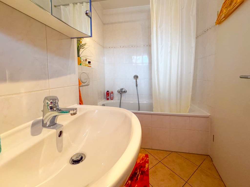 - Tageslichtwannenbad mit Anschluss für Waschmaschine/Trockner.