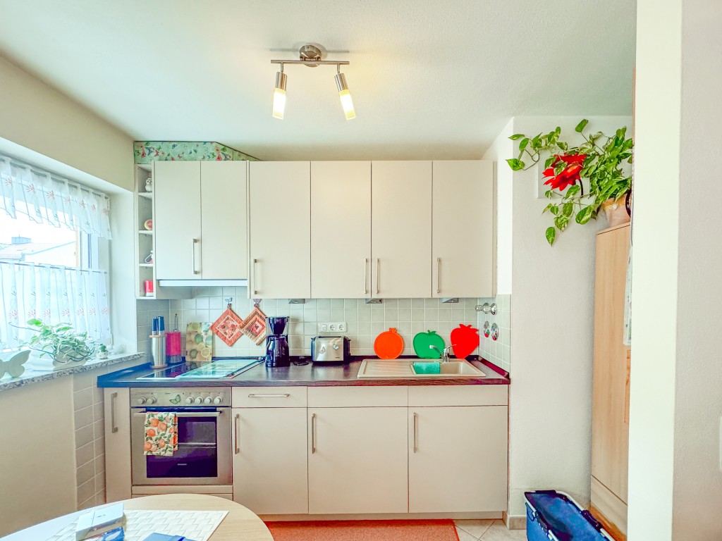 - Voll ausgestattete Einbauküche, Spülmaschine nachrüstbar. Praktische Kühlschranknische.