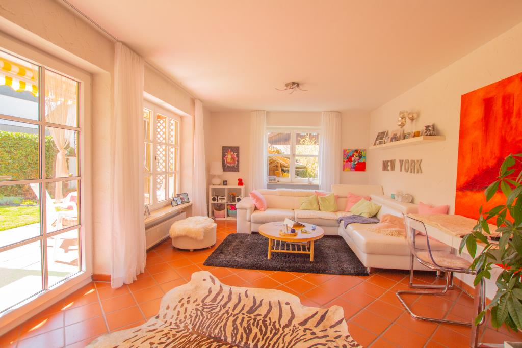 - Großes Wohn-/Esszimmer mit sehr großen Fensterelementen für besonders viel Tageslichteinfall.