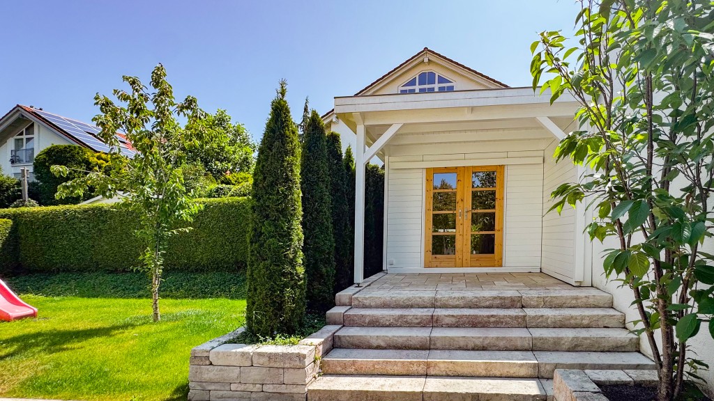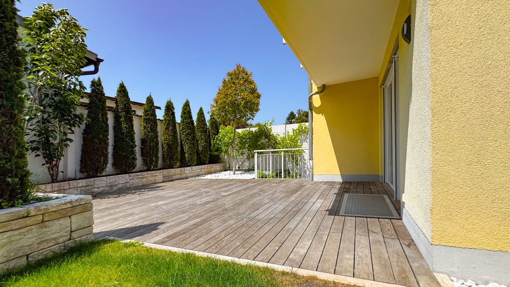 Die zu verkaufende Hauseinheit liegt versteckt, ist auf dem Grundstück hintergelagert und weist eine herrliche Süd-West-Ost-Ausrichtung auf.