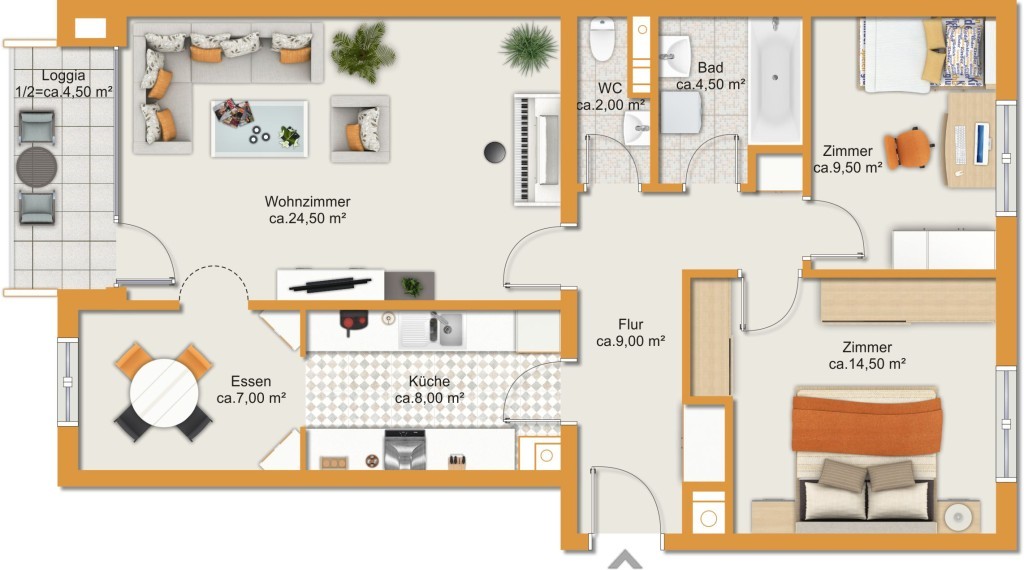 + Westloggia mit Blick in eine kleine Grünzunge.