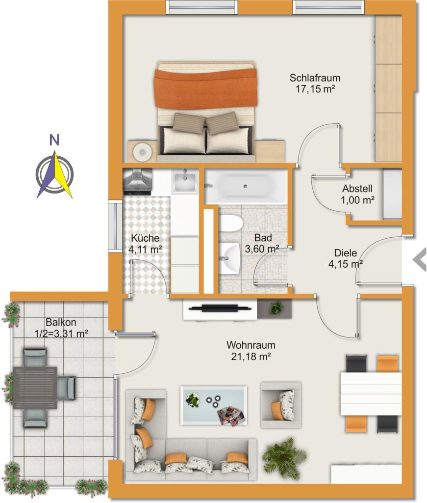 + Straßenabgewandt: Ruhige Wohnlage.
