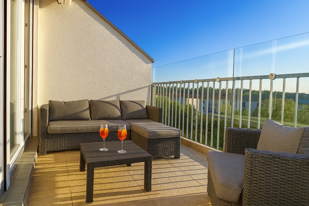 ... den windgeschützten herrlich großen Balkon