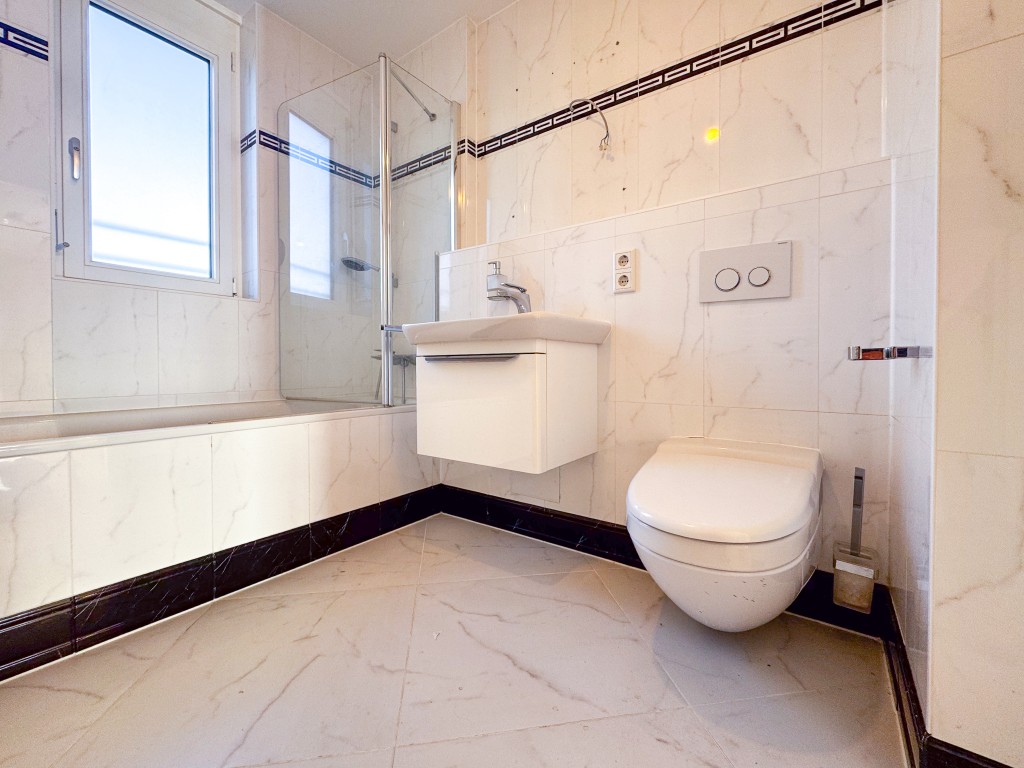 + Ein bißchen Luxus: Hochwertiges Tageslichtbad.