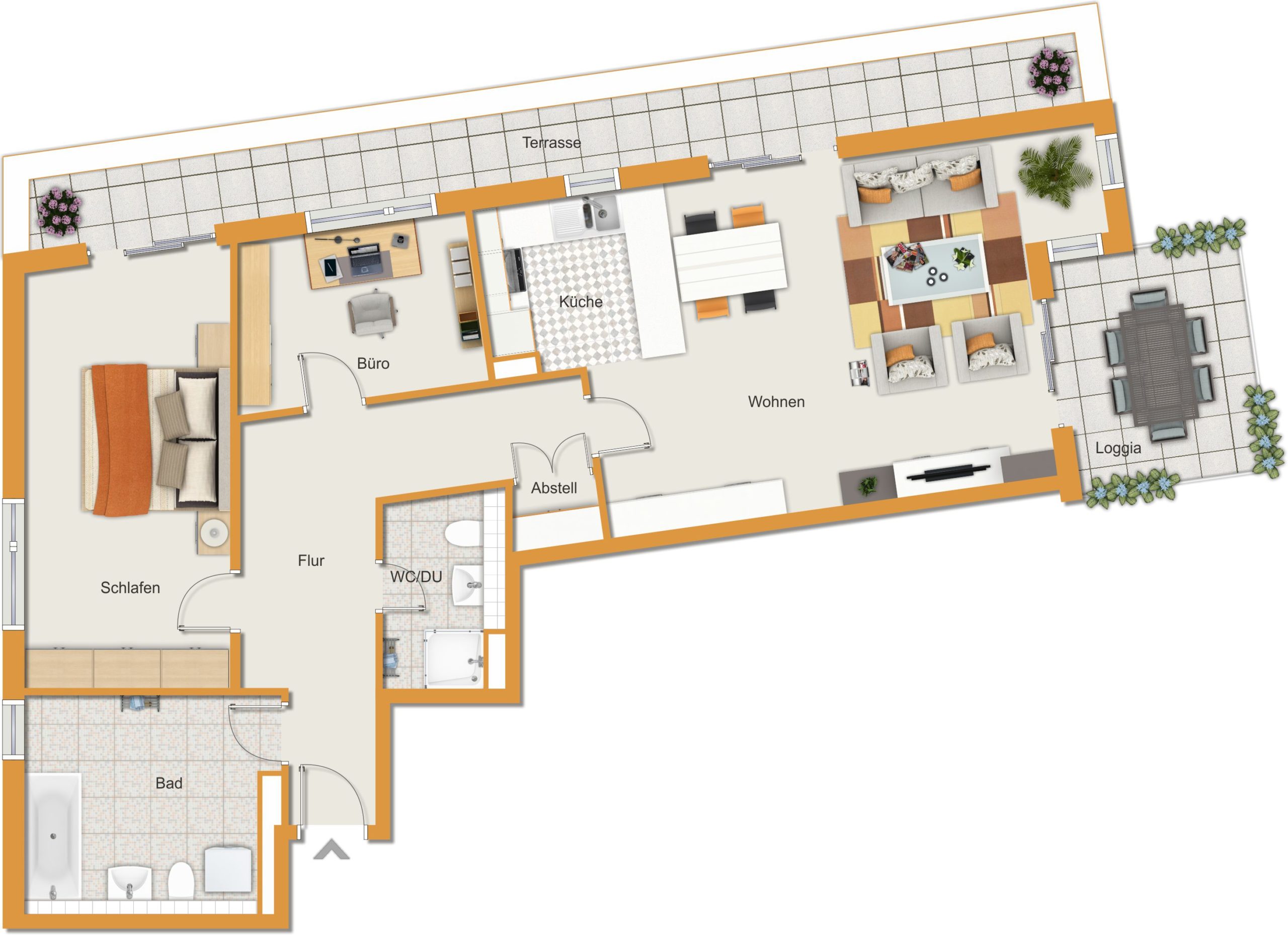 - Aus allen Zimmern Zugang auf die schmale Dachterrasse (ca. 15 m²)