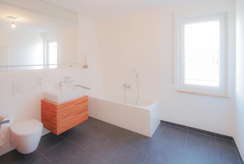 - Großformatige Fliesen von Villeroy & Boch in den Bädern